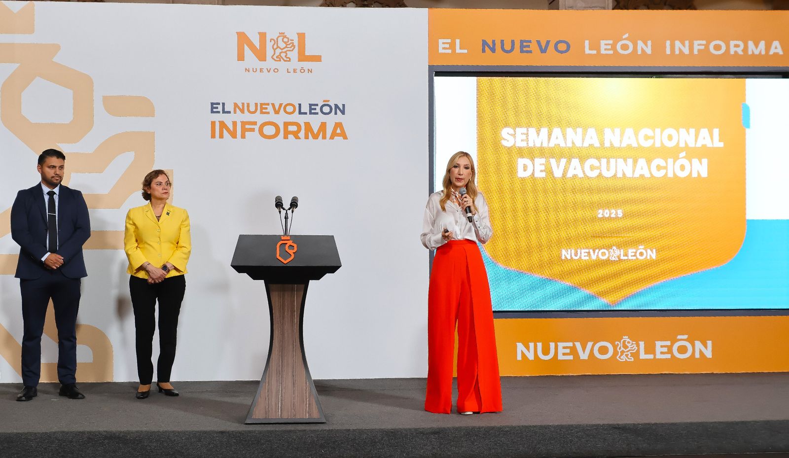 Al encabezar el Nuevo León Informa, la secretaria de Salud, Alma Rosa Marroquín Escamilla señaló que en esta Semana Nacional de Vacunación 2025 que se llevará a cabo del 26 de abril al 3 de mayo en la cual participarán más de 839 personas entre enfermeras, enfermeros y agentes voluntarios en los distintos módulos que estarán distribuidos por todos los municipios de Nuevo León.