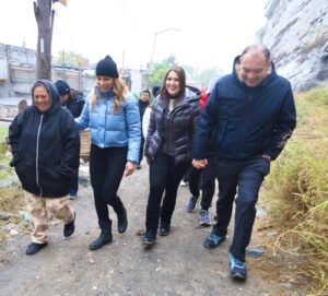 En un recorrido por la Colonia Salvador Allende, a donde asistió acompañada por el diputado local Rafael Ramos, entregó más de 200 cobijas y alimentos de la canasta básica a los residentes de la parte alta del cerro Topo Chico.