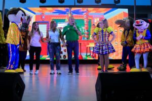 Los pequeños disfrutaron desde temprano con payasos y mimos que repartieron globos, además que pudieron participar en actividades de destreza, mientras que en el escenario se presentó el show de Bim Bom Ba, seguido por Bely y Beto y el Show de Ratón y sus Amigos.