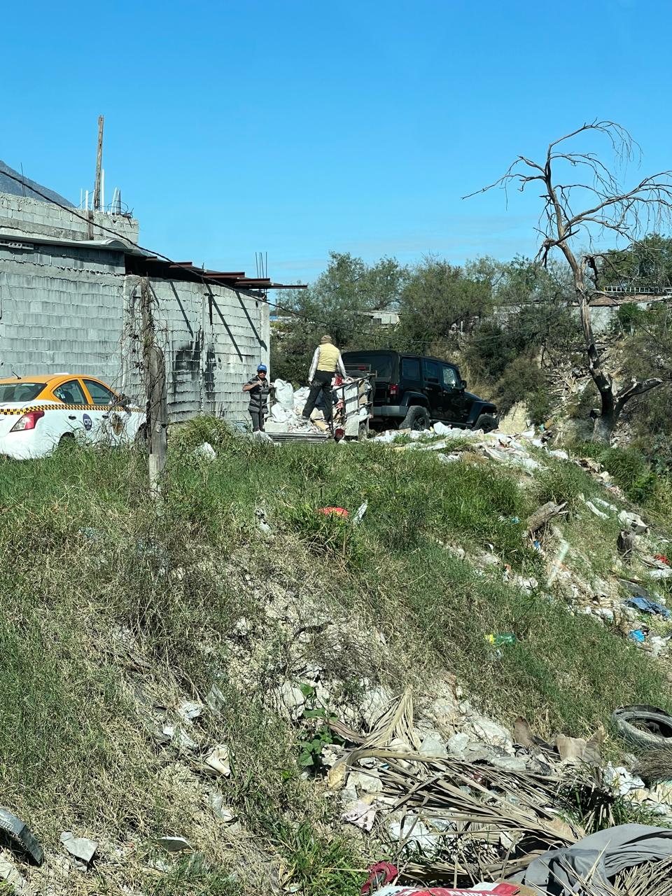 Autoridades de la Secretaría del Medio Ambiente de Escobedo fueron alertadas sobre personas descargando escombro y otros materiales de construcción en predios ubicados sobre la Avenida Las Torres pasando el vado de la zona conocida como La Isla.