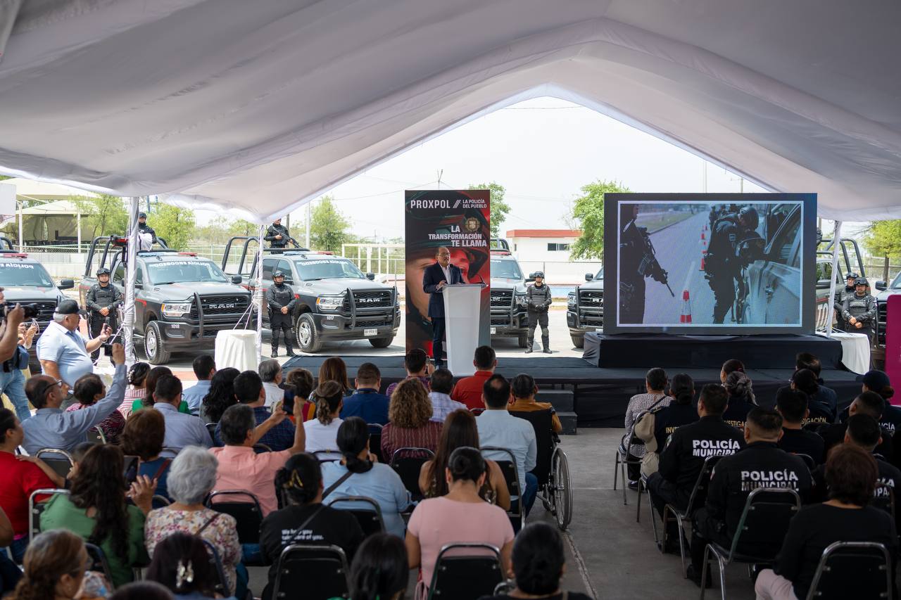 El alcalde destacó que, en Escobedo y con la visión de la 4T Norteña, se ha conformado el mejor equipo de seguridad, un grupo de mujeres y hombres valientes que día a día salen a las calles a proteger a las familias con orgullo, compromiso y honor.