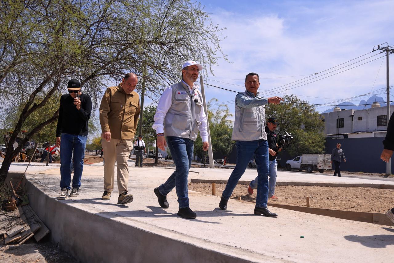 Durante un recorrido, el alcalde de Monterrey, Adrián de la Garza, estuvo acompañado por el secretario de Obras Públicas, Nazario Pineda, para constatar el desarrollo de los trabajos.