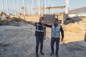 Durante la visita recorrió la construcción del edificio principal, donde se avanza en la cimentación, la instalación de la estructura metálica, el muro de contención, y sanitarios, entre otros.