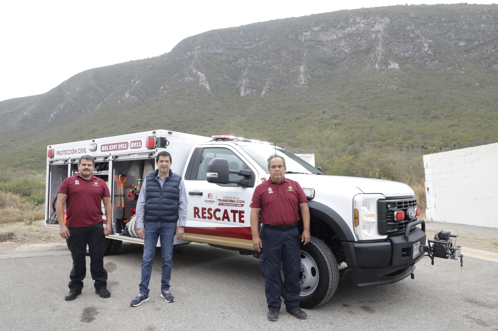 Desde el área natural conocida como “La Piedra”, ubicada en el Cerro del Topo, el Secretario del Ayuntamiento, Felipe Canales reiteró que en Escobedo se mantiene un macro despliegue estratégico de cuerpos de auxilio para atender cualquier emergencia de manera inmediata.